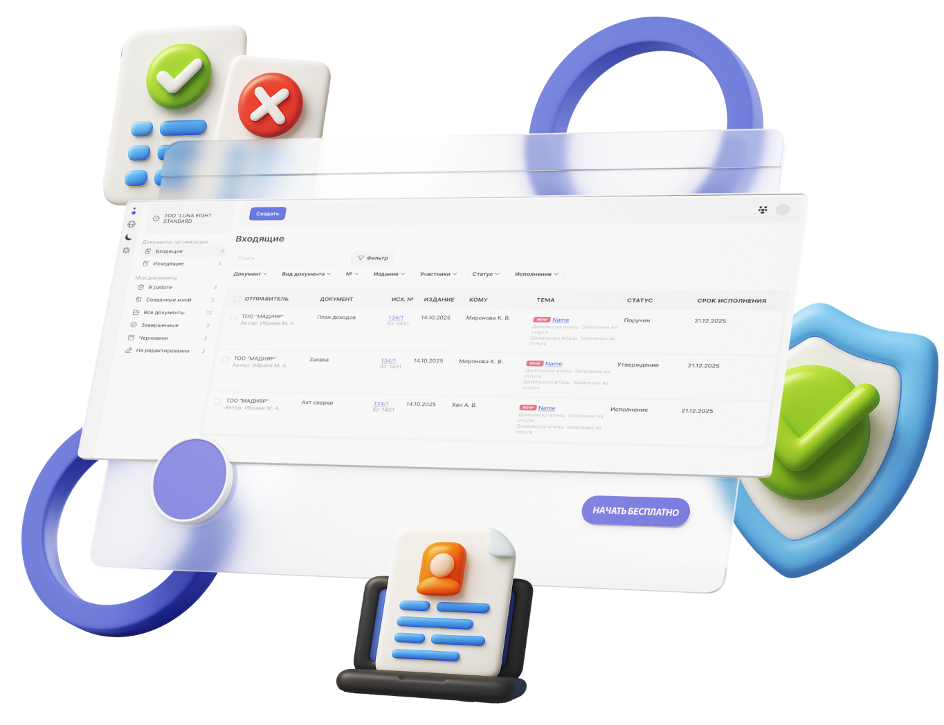 • Автоматическая проверка ИИН/БИН и реквизитов контрагентов и сотрудников.