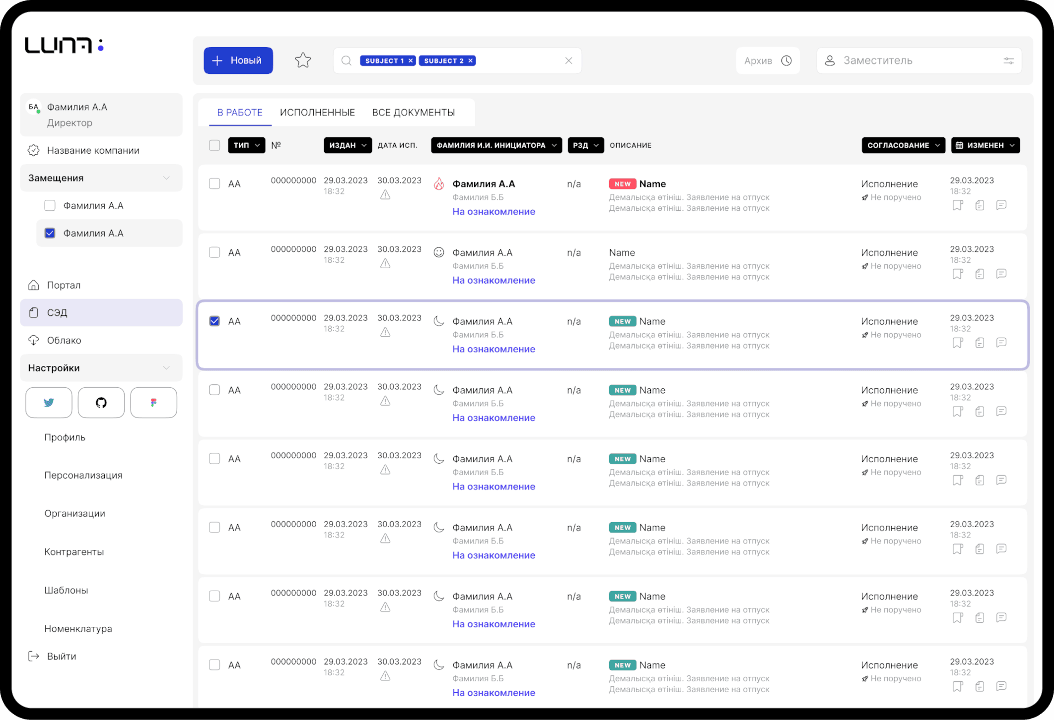 | Настройка шаблонов и маршрутов движения документов на уровне администратора | • | • |