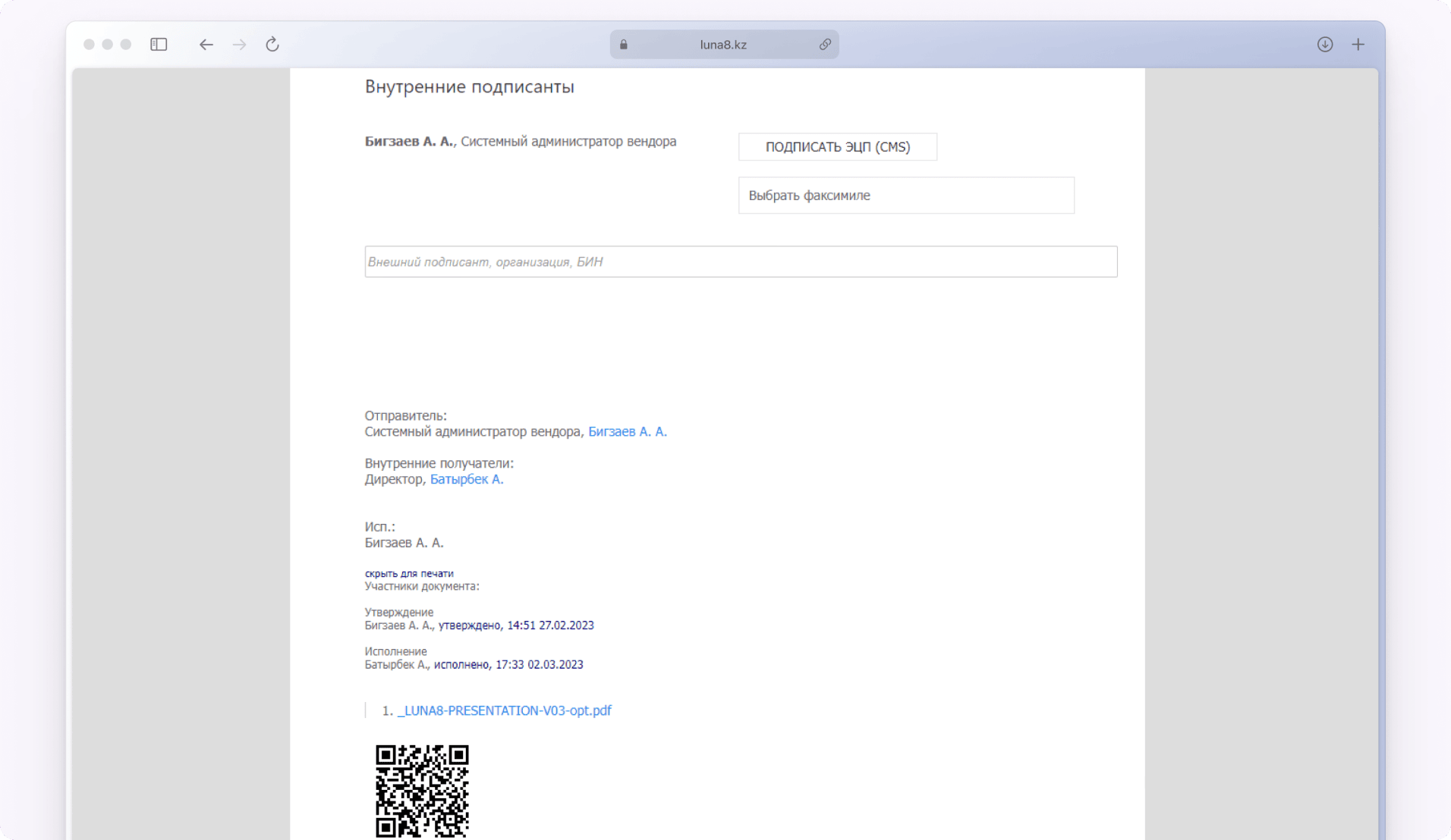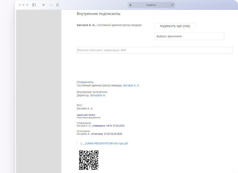 | Подписание документов ЭЦП НУЦ РК и цифровым факсимиле | • | • |
