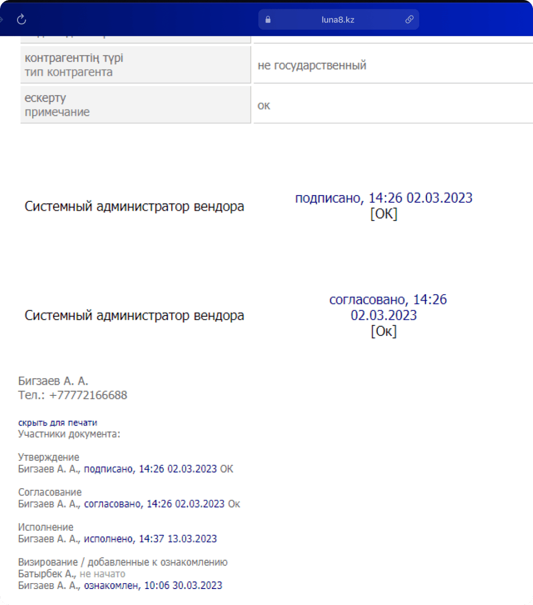| Настройка вендором одного маршрута движения документа | — | индивидуально |